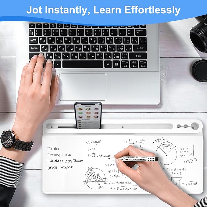 - Smooth Writing and Erasing - The desk whiteboard is made of high-quality glass, you can write smoothly and erase cleanly, without scratches and residues. Eliminating the need for post-it notes and memo, you can be more convenient to write down to-dos, reminders and brainstorm ideas during work, meeting and phone calls.