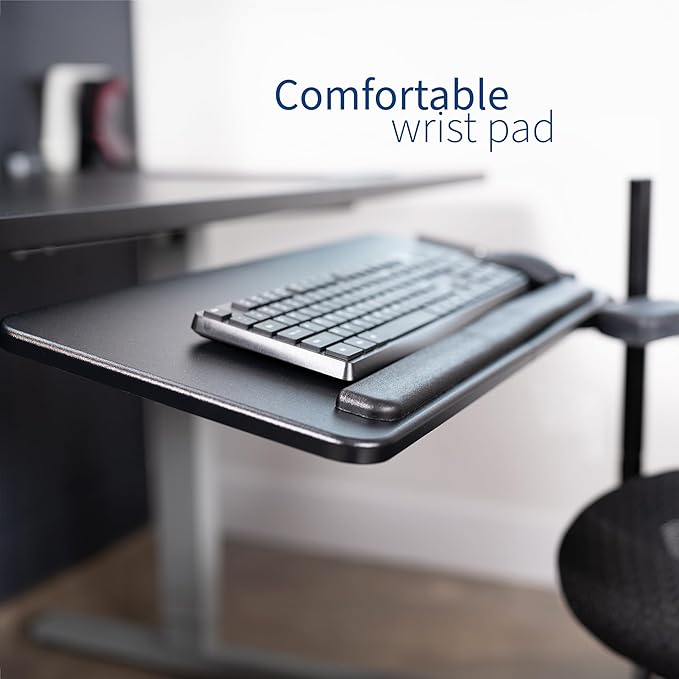 - Large Keyboard Surface: The spacious 26” x 11.8” platform fits most standard and oversized keyboards on the market, and wrist padding increases overall comfort