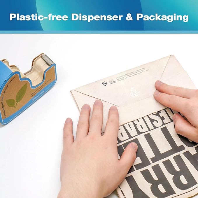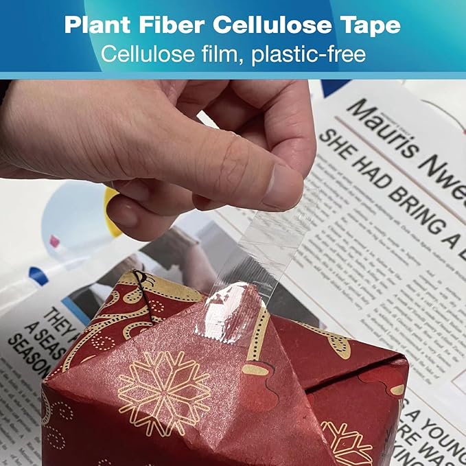 - ♻️A True Magic: This plant-based tapea nddispenser, complete with a plastic-free desktop tape dispenser, works like magic to repair rips and tears seamlessly, perfect for gift wrapping on holidays and birthdays. This clear tape for dispenser also photo-safe and writable.