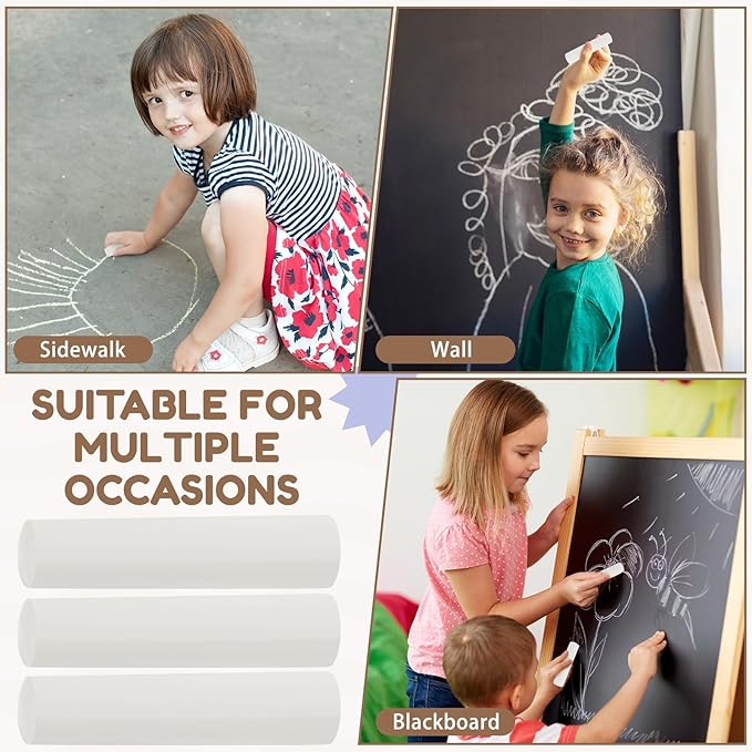 - Reliable Material: our large chalk for kids is made of plaster powder and paint, durable and trustworthy, with fine workmanship, not easy to break or fade, each chalk will last a long time and will not need to be replaced often, saving you time
