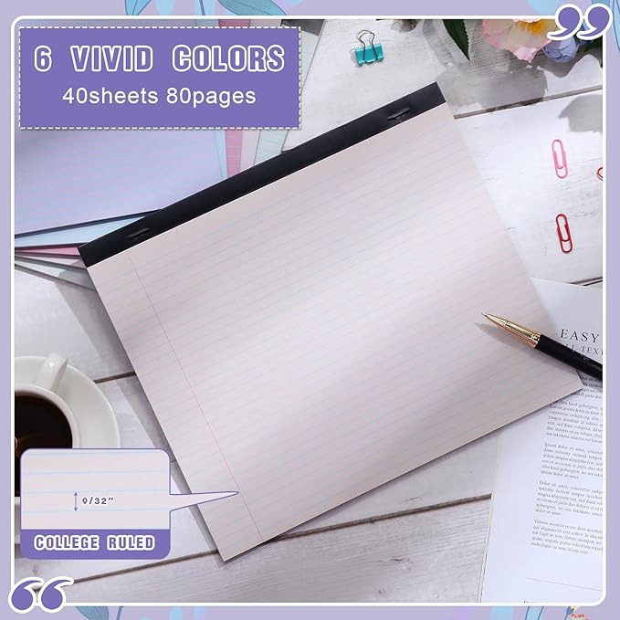- Enough to Use and Share: each package includes 6 pads of lined notepads 11 x 9.5 inches in 6 different colors, with 40 sheets in each pad, a total of 240 sheets; This ensures a generous quantity to last you for multiple projects or an extended period of time; And you can share them with your family and friends