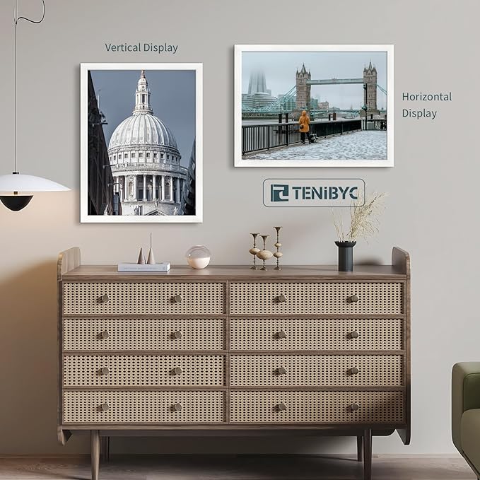 - Timeless Elegance: Experience the serene beauty of our white wood grain frame. Expertly crafted by TENIBYC's dedicated designers, it blends seamlessly with any decor, adding a touch of timeless charm to your space.