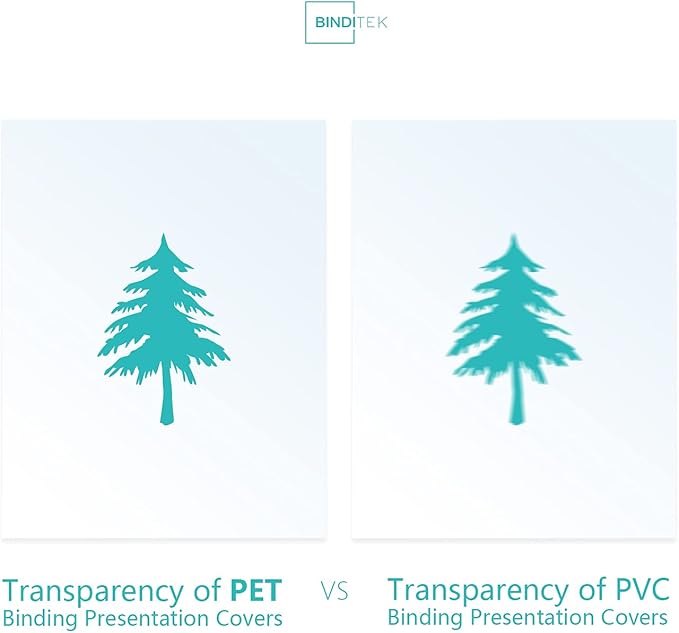 - 4.5 Mil Polycover: Each binding presentation cover is made from 4.5 mil (120 mic) Polyethylene Terephthalate (PET) material — non-toxic, tasteless, and safe.
