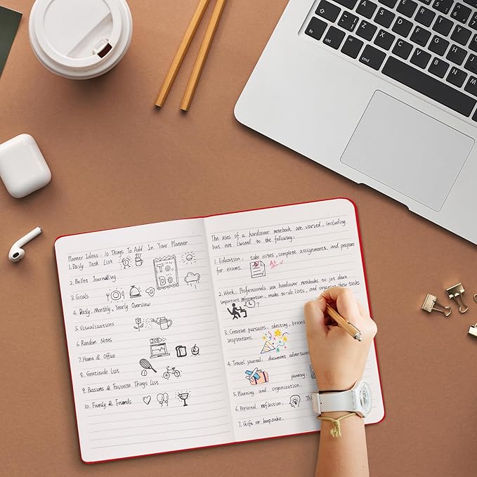 - 【180° Lay-Flat Binding】Lay-flat spine design with reinforced thread-binding ensures seamless writing without mid-page gaps.