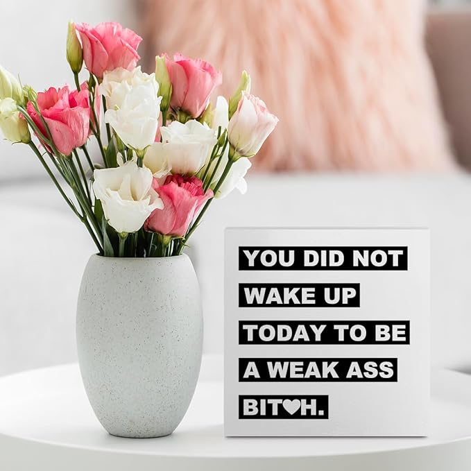 Inspirational Office Supplies Rustic Desk Decor Motivational White Wooden Box Sign Funny Farmhouse Wood Plaque Positive Cubicle Accessories Workout Room Gym Home Shelf Table Counter Decorations