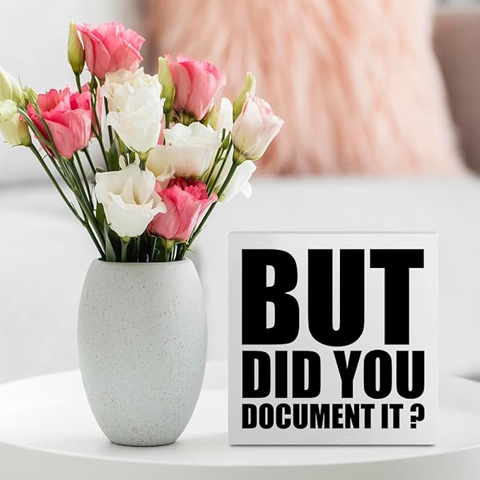 Funny Rustic Country Desk Decor Office Supplies White Wooden Box Sign But Did You Document It Humor Coworker Boss HR Gifts Office Essentials Farmhouse Wood Plaque Cubicle Accessories Home Shelf Decor