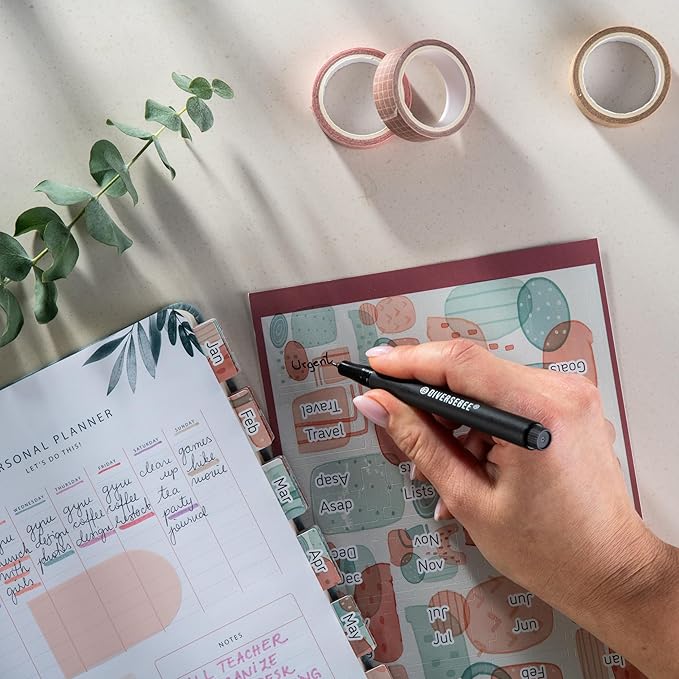 - 24 Tab Stickers: Great value set of tab stickers that includes 12 month tabs and 4 blank tabs so you can reference your own notes and organize your planner better.