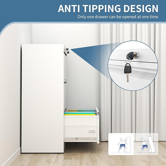 - 【Unique Design】:The upgraded lock system possesses 1 lock & 2 keys,Built-in interlock system secures all drawers to make sure safe file, with folding key lock convenient to carry. With all drawers interlocking mechanism design, it will prevent tipping.