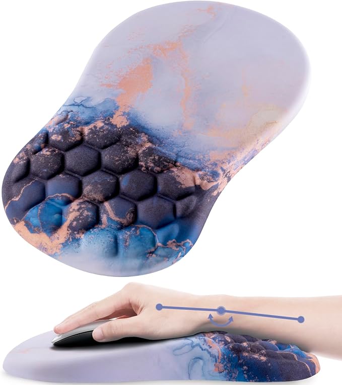 - 【Ergonomic Mouse pad】 the mouse pad is made of 100% memory foam, and the tilt angle on the surface can keep your arm always in the in proper alignment. The ergonmic structure of the arched part provides the maximum comfort to your wrist, and prevents the carpal tunnel syndrome.