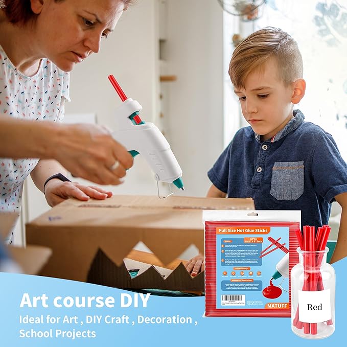 MATUFF Red hot Glue Sticks Full Size 0.43” Dia x 8” Long, 52 pcs Hot melt Adhesive Glue Sticks, All-Purpose Colored Glue Gun Sticks for Christmas Decoration Crafts Arts School Home Repair Bonding