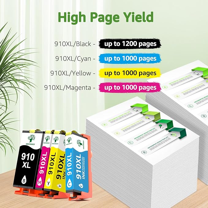 - Improve your printing experience with GREENSKY Remanufactured 910XL Ink Cartridges featuring cutting-edge chip technology designed for "H P+" printers