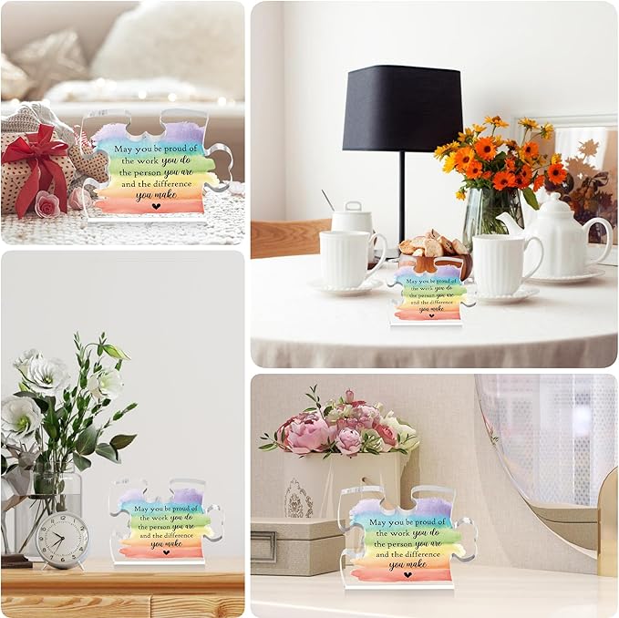 - Proper Size: The acrylic block puzzle size is 3.9 inches x 3.3 inches x 0.4 inches (thickness), its thickness can stand independently without other supports, suitable for placing on tables, office desks, bedside tables, living rooms, bedrooms, counters, its exquisite The design enhances the decorative effect of your home.