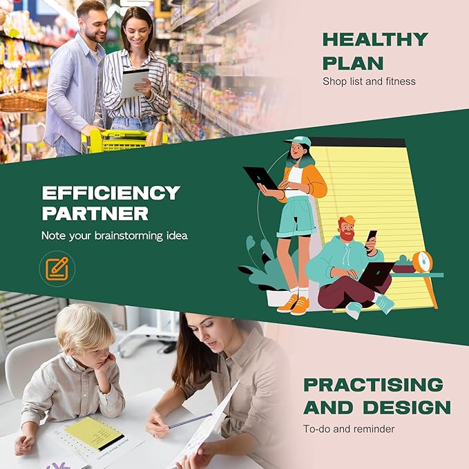 - 【Yellow Paper Legal Pads】: Note pad 5x8 is made of recycled yellow paper, protect your eyes in daily bright white light. Furthermore, yellow 5x8 notepads also help you focus on what you are doing, and catch important notes/lists among the mess. Making these writing pads 5x8 a budget-friendly option for students, the old, or anyone whether it is regularly used for taking notes, making grocery lists, or writing down brainstorm ideas.