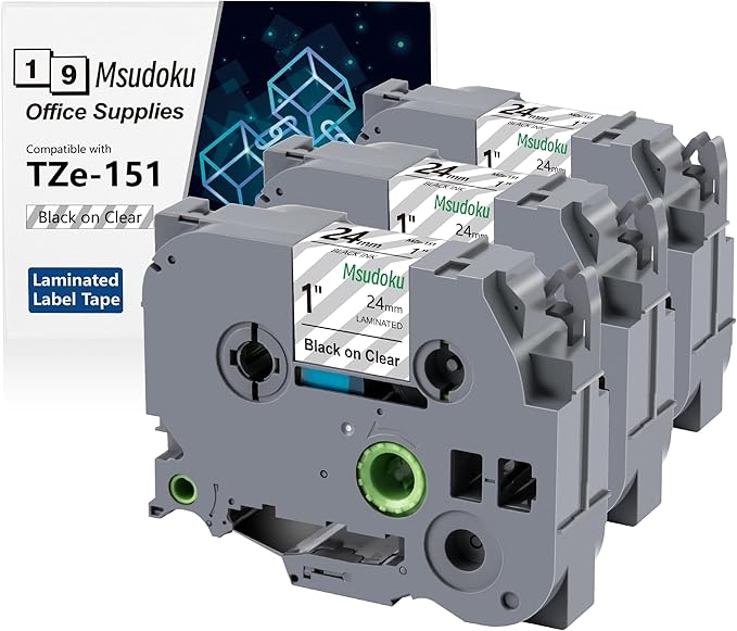 - These compatible for brother label maker tape 24mm 0.94 TZe-151 TZe151 have strong adhesive and no sticky residue when you remove it. The split back design of ptouch label tape 24mm clear label tape is very easy to peel off
