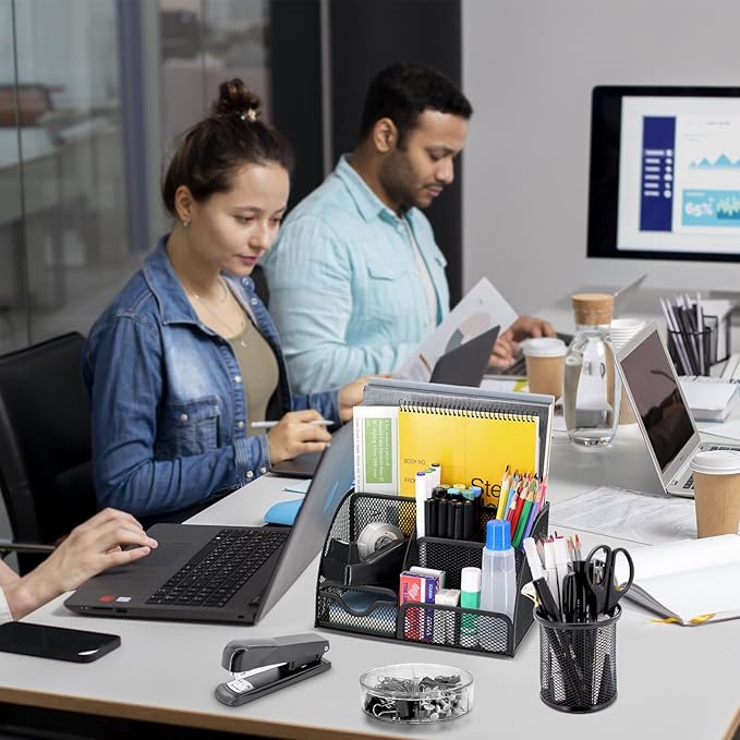 - MULTIFUNCTIONAL DESK ORGANISER SET: Included in the set are 3 different organisers to keep your pens, notes and schedules organised and clutter-free on your desktop, helping to save space and improve your productivity.These organisers are practical and add to the aesthetics of your office, making it more comfortable to work.