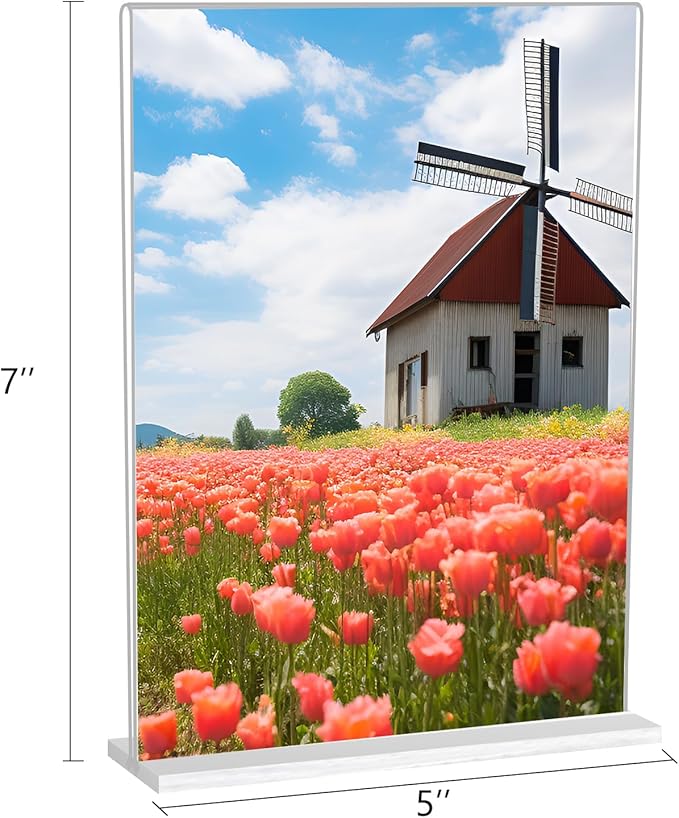 - 【Tips】-Please tear off the film before use. There is an anti-scratch protective film on both sides.It can be torn off, otherwise the acrylic will look unclear. Package includes 6 Pack 5x7 inch acrylic display stands