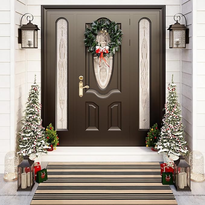 OJIA Christmas Outdoor Rug 3'x5', Black and Tan Area Rug Machine Washable Rugs Cotton Hand Woven Entry Rug Indoor Outdoor Striped Carpet for Front Porch/Deck/Backyard/Camping/Outdoor Decor