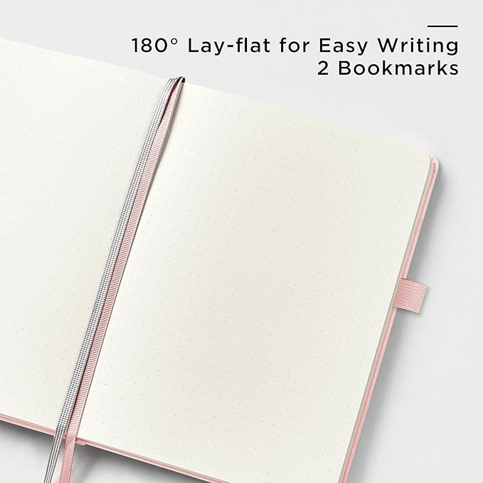 - 180° LAY-FLAT DESIGN: The lay-flat design allows for easy writing and ensures that you can utilize every page efficiently. Journaling, note-taking and planning has never been easier! 2 Bookmarks to help you find important content faster