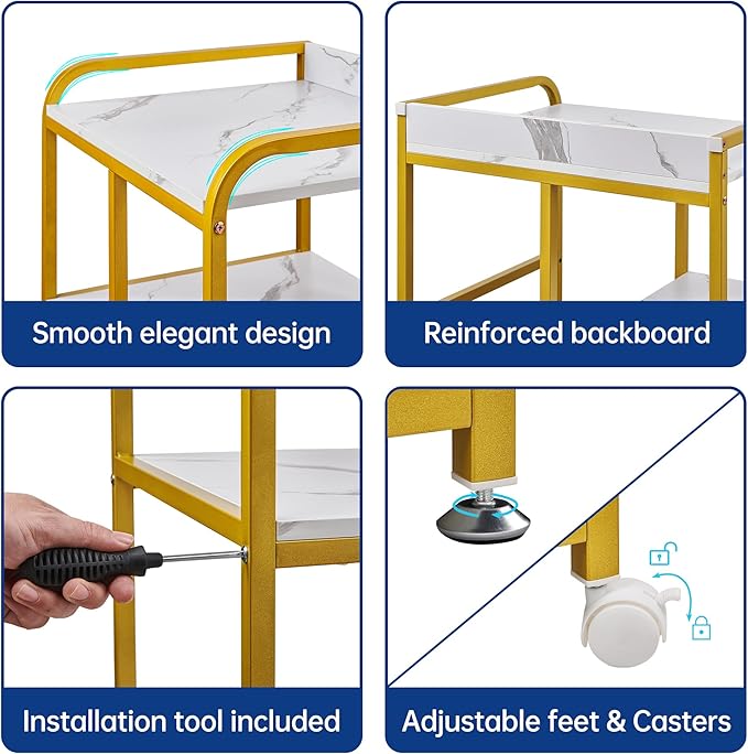 - 【Smooth Modern Appearance】The bright faux white marble shelf combined with stylish streamlined golden framework outlines the endless beauty of modernism, making it an appealing home office furniture, which stands apart from many other alternatives in the market.