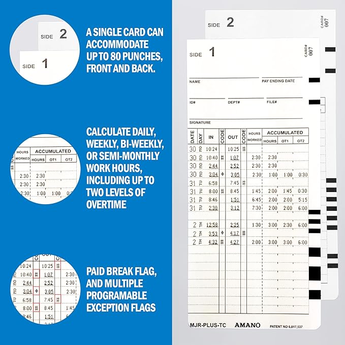 - EASY TO SETUP AND MANAGE: You can easily setup and start stamping in just a few minutes. You can simply drop the card for punching. It has automatic Daylight Saving Time adjustment. It can accommodate weekly, bi-weekly, and semi-monthly pay periods.