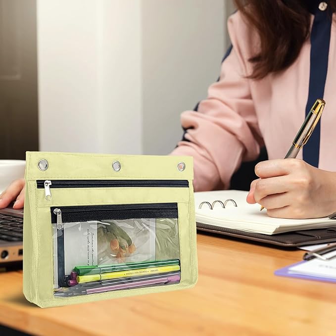 - [3-Ring Pencil Pouch]: The zippered pouch with rivet holes is perfectly compatible with all standard 3-ring binders and is widely used in universities, schools, offices and homes.