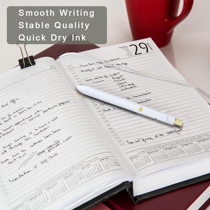 - Quick-Drying Ink : The 0.5mm retractable rolling ball gel pen uses long-lasting, fade-resistant ink that stays clear without smudging. The ink dries quickly, ensuring clean writing and helping to keep your work neat and organized.