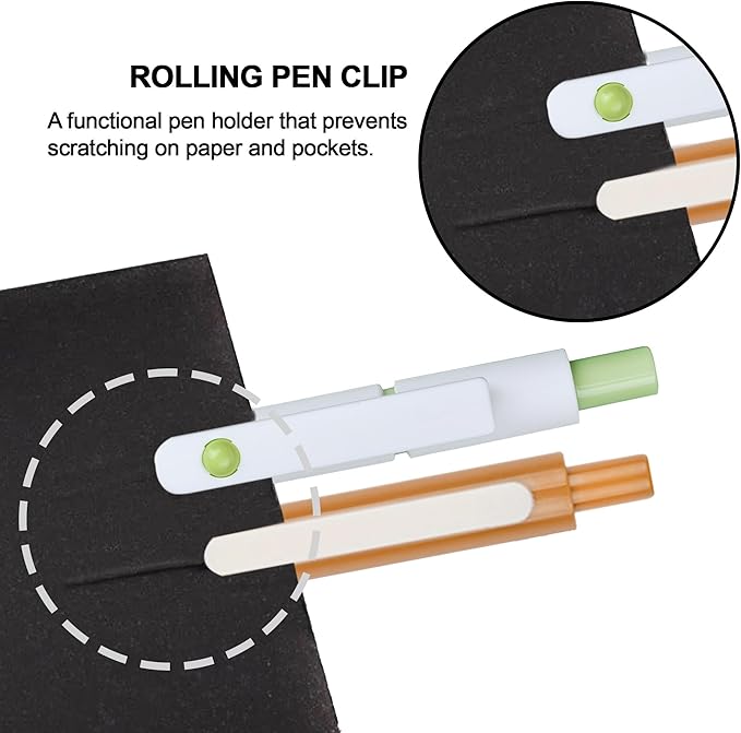 - Multi-function Pen Clip : The convenient clip design allows the pen to be easily and securely attached to a book, notebook, or bag. Additionally, the durable clip makes it easy to carry and prevents the pen from getting lost. With its retractable design, the pen tip automatically retracts when you gently press the cap.