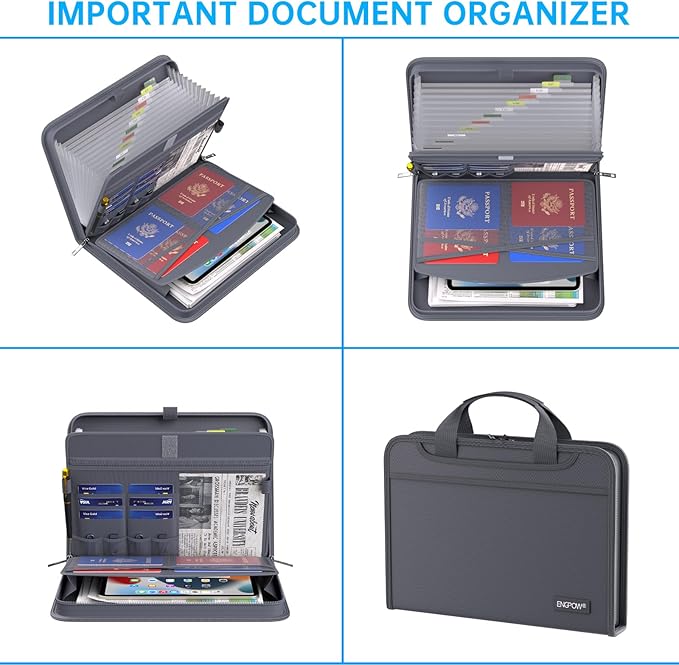 - Innovative Humanized Design: Design with a strong grab handle for carrying everything you needed easily. Featuring a double zipper for convenient opening and closing,you won't have to worry about losing any important documents. The included colorful labels make categorizing your files effortless. The fireproof file folder is suitable for business, travel, office, school, home storage, you can be 100% sure that your important documents are in a safe place.