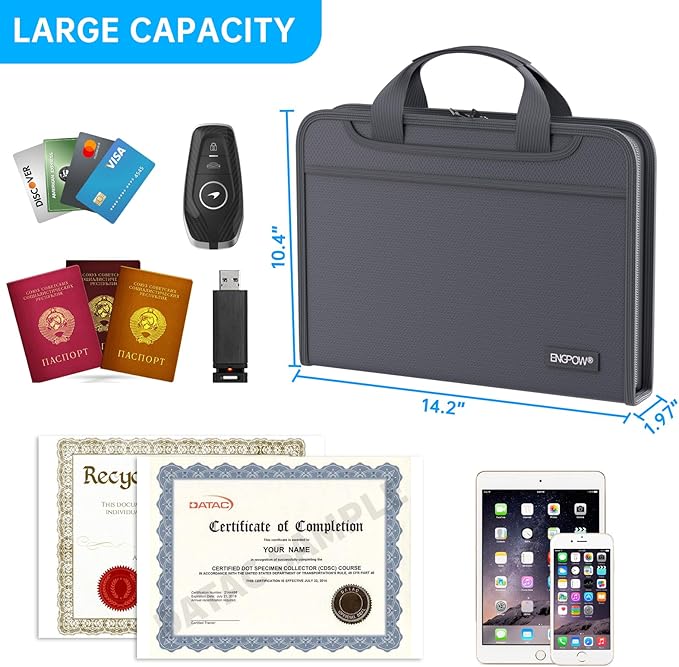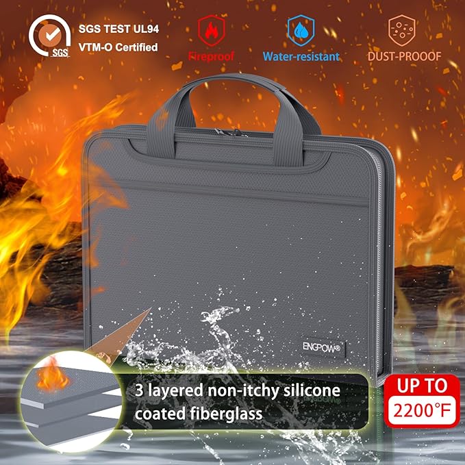 - High-Quality Materials: Protect your files with ENGPOW fireproof accordion file organizer.It is made of 3-layered non-itchy silicone-coated fiberglass which withstand the temperature up to 2200℉.It has been passed by SGS TEST(UL94 VTM-0 Certified).Fireproof File Folder is fireproof&Water-resistant,which can effectively protect your important documents in a fire,flood,and wet weather. They will further keep your files intact.Giving you time to save your important documents when disaster strikes