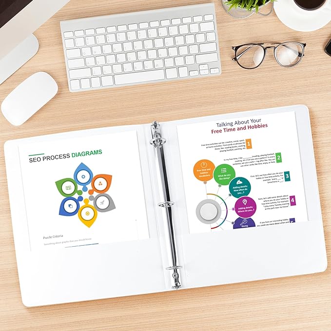 - 1-1/2" white binders hold us Letter size 8-1/2" x 11" paper, round ring can hold 300+ paper capcity, 6 packs.