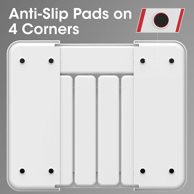 - CONSIDERATE DESIGNS: Anti-sliding pads on all four corners keep items securely in place, preventing any unwanted sliding under the dividers. The buckle design allows smooth sliding and easy adjustment while preventing the dividers run off the rails. Enjoy a seamlessly organized experience with AUJEN utensil holders!