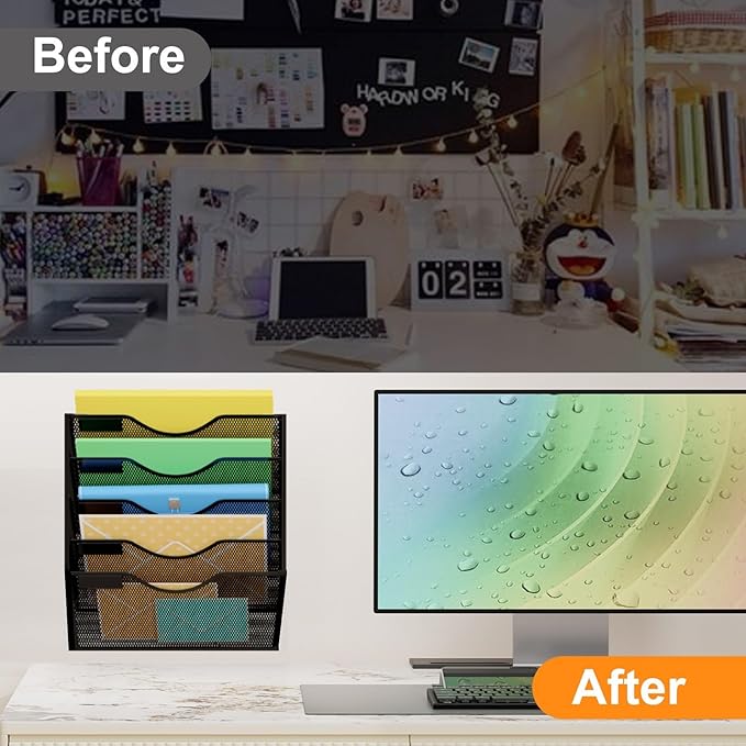 - Wall mounted file holder comes with mounting screws that it can be easily mounted on the wall, board or door cabinet, etc.