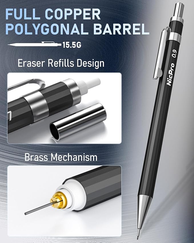 - Good Weight & Smooth Writing: These lead pencils are full-brass metal body provides nice weight balance for fatigue-free writing and drawing.Ideals for artists, professionals, teachers and students alike. Convenient to carry your whole mechanical pencils set everywhere. Perfect for writing, drafting, drawing, sketching.