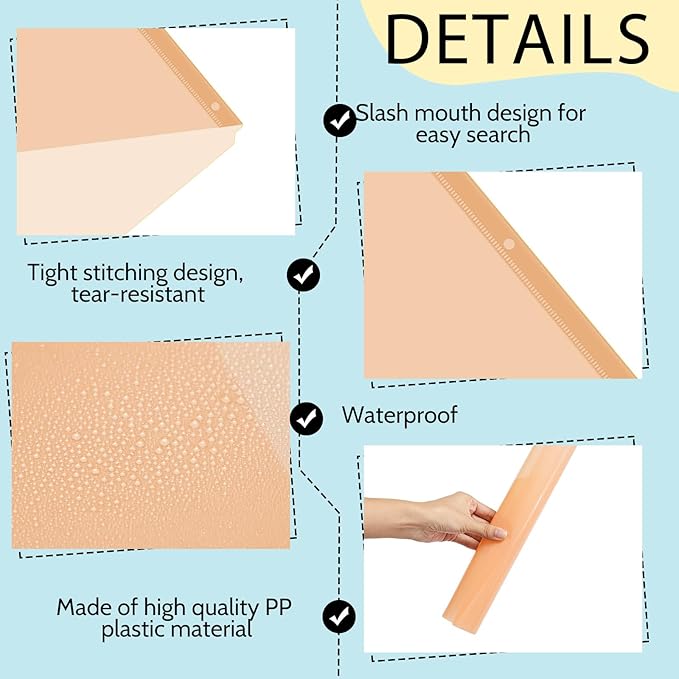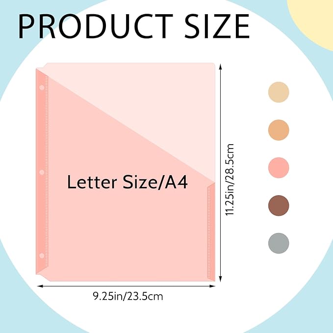 - Package Information: you will get 50 pieces of binder pockets, 5 colors, each color has 10 pieces, with size in approx. 9.25 x 11.22 inches/ 23.5 x 28.5 cm; Sufficient quantity will meet your using needs, and you can share them with your family
