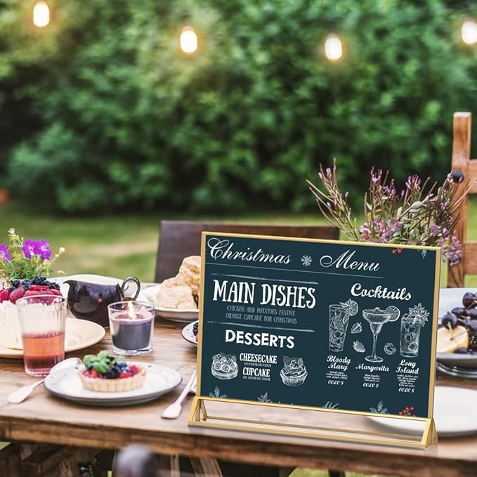 - 【Double Sided Display】This 11X 8.5 gold sign holder is designed with a vertical double sided stand that clearly and efficiently displays pictures and posters