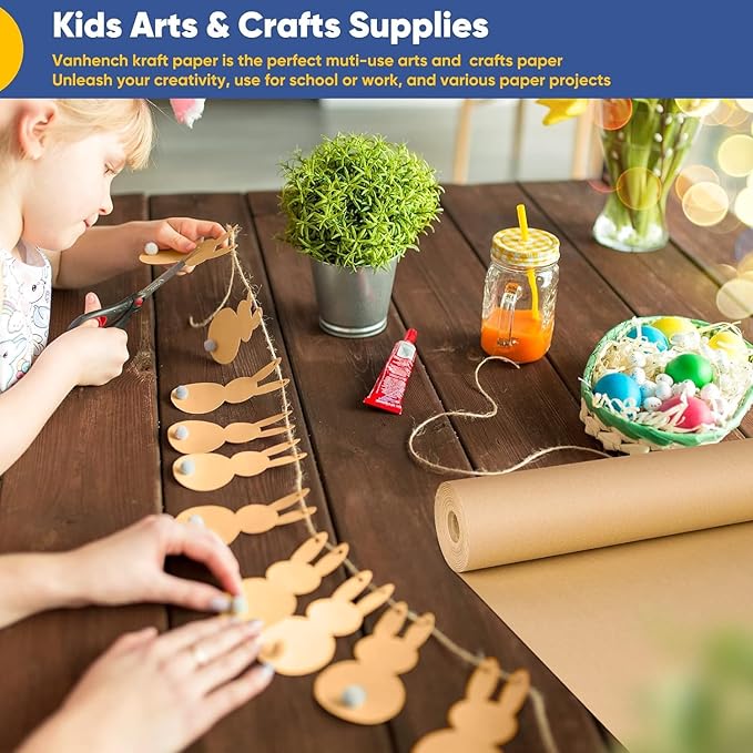 - Thick Paper. Made with industrial grade heavy duty paper, Vanhench brown wrapping paper roll is sturdy, does not rip or tear easily. The kraft paper roll can be used as parcel packing paper, great protection for shipping, packing and moving, better alternative to newsprint paper sheets and construction paper for arts and crafts paper. Meets your needs for everyday use.