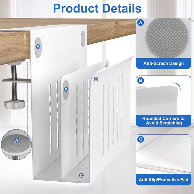 - HEAT SINK AND NON-SLIP SHEET DESIGN: HAMOPY desk side storage is designed with heat sink holes, the metal material makes the heat dissipation faster, when your cell phone, tablet and other devices are charging, you don't need to worry about the heat dissipation of your devices, better protect your devices. The inner surface, bottom and clip ends of the product are equipped with non-slip tabs to secure your devices such as laptop or tablet to the desk organizer.