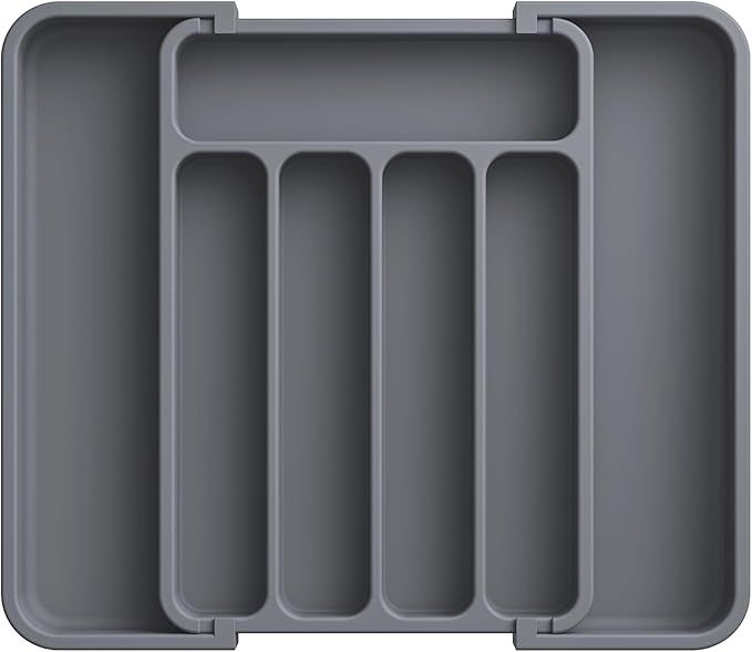 - LARGE CAPACITY: This kitchen utensil organizer comes with 5-7 compartments, creating more space in drawers for silverware, cutlery, and kitchen utensils. This installation-free gadget features a straightforward design—just place it in the drawer and let it work its magic, creating order effortlessly.