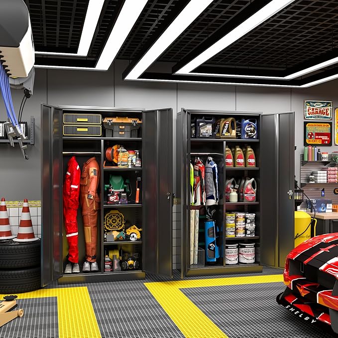 - ★【Upgraded Humanized Design】: Greenvelly metal storage cabinet with locking doors compared with the cabinets on the market, we have upgraded the design, which is more practical. The storage cabinet lockable optimizes the storage space, and 3 shelves provide greater flexibility to meet your needs. Each door has a rubber cushion to reduce the noise when closing.