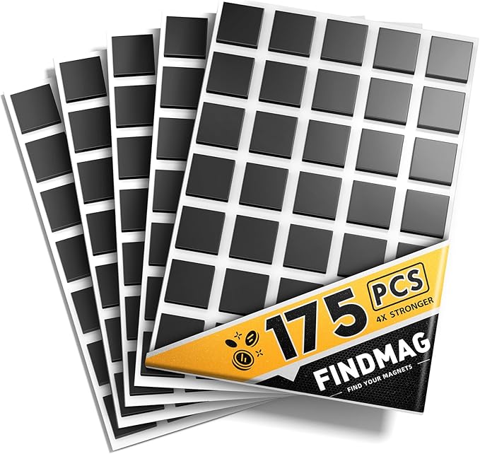 FINDMAG Magnetic Tape, 175 Pcs Square Magnets with Adhesive Backing, Flexible Magnetic Tape for Crafts, Magnetic Strip for DIY Projects, Hanging & Organizing Light Objects (Each 20x20x2mm)