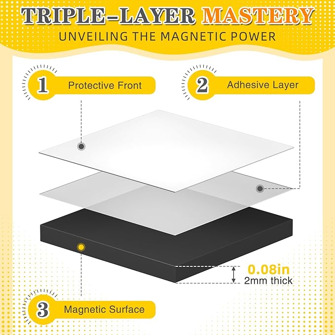 - High-Quality Materials β Our magnets are made with the highest quality magnetic materials and strong glue, ensuring they're strong enough to withstand regular use. Featuring adhesive on one side and flexible magnet on the other, they easily stick to plastic, metal, concrete, tiles, walls, and more.