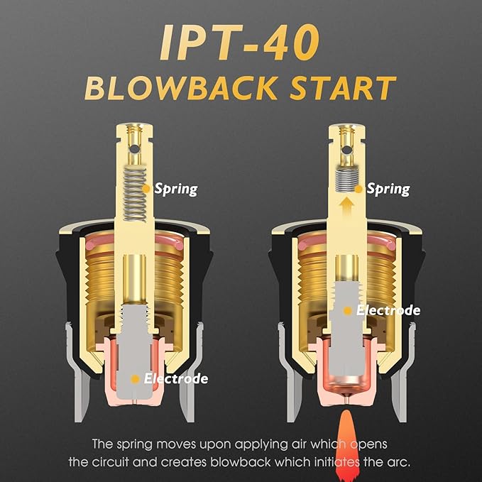 - Built-in post flow, when stop cutting, the air runs on to cool the consumable of the plasma cutter torch to extend consumable life.