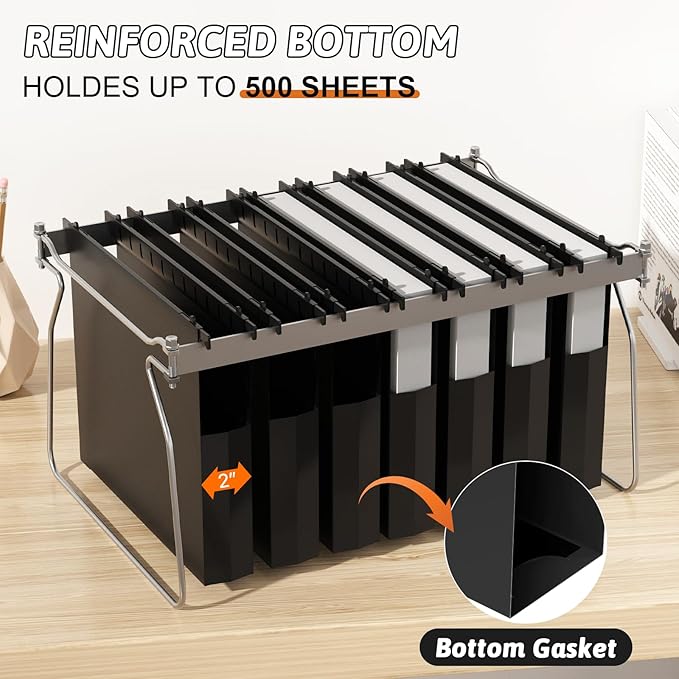 - 【EXTRA CAPACITY & REINFORCED BOTTOM】: Hanging file folders buttom 2" expansion design for up to 500 files at once; includes black plastic plate-reinforced insert for extra support on bottom panel.