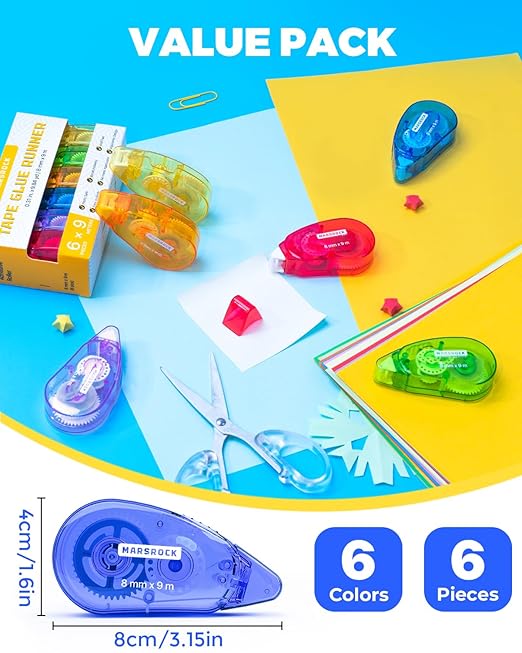 - Fast-drying & Strong Adhesion: Unlike traditional glue, MARSROCK dries quickly without spills or wrinkling, keeping your projects neat and professional. Its acid-free formula prevents photos from yellowing over time, ensuring lasting vibrancy. With superior adhesive strength, MARSROCK outperforms other tape glues, offering smooth and precise application for scrapbooking, crafts, and more. Reliable and easy to use, it delivers a flawless finish, making it the ideal choice for quality and durability in adhesive tools