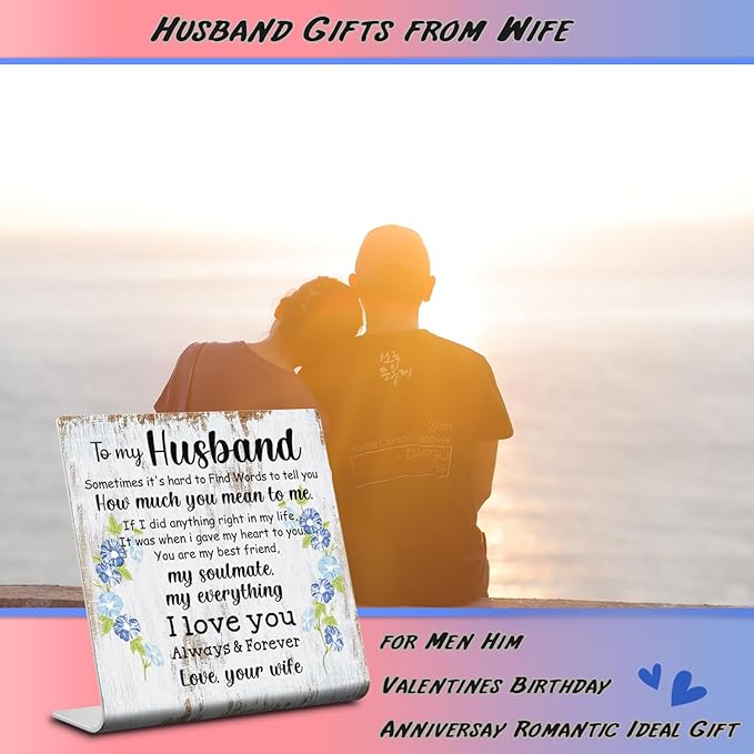 Husband Gifts from Wife To My Husband Sign Plaque Gift Wedding Anniversary Romantic Gifts for Husband Birthday Christmas Valentine's Fathers Day from Wife 4 x 4 inch XUV67