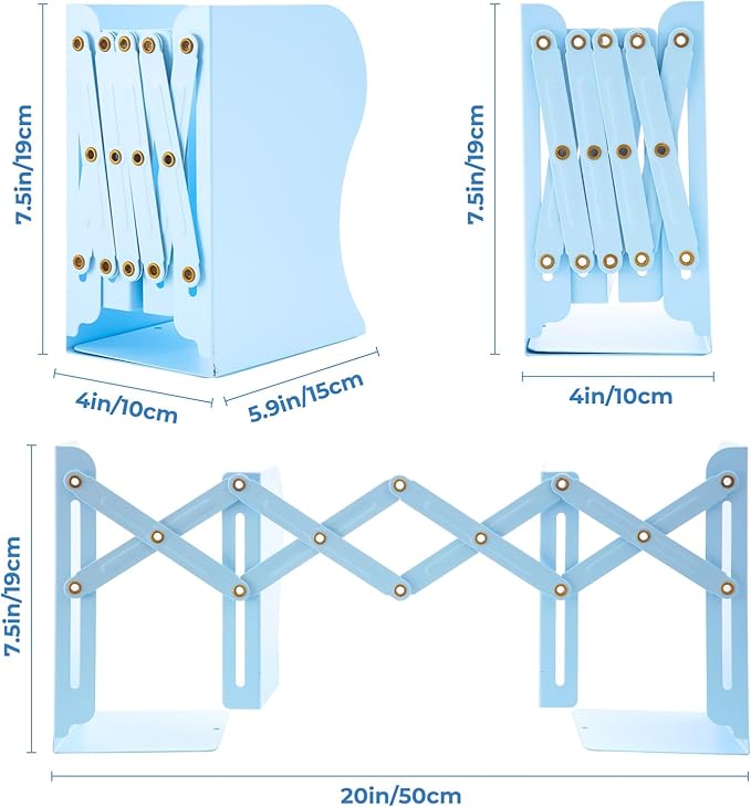- 【Adjustable Design】-Our bookends have an adjustable design, the adjustable range is 4-20in, allowing you to easily adjust the distance between the bookends to fit different sizes of books or magazines.
