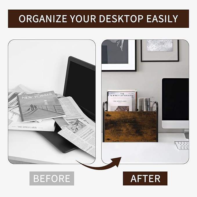 - Vintage Elegance,Modern Durability:Embrace the timeless allure of vintage aesthetics coupled with the robustness of modern materials.The carefully selected rustic wooden board exudes character,while the premium metal framework with baking paint processensures this magazine holder stands the test of time,becoming a charming and enduring piece in your home decor.