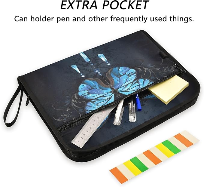 - 【Stylish and Functional】 File folder with zipper comes with sticky tabs and an extra front pocket. Colorful sticky tab for marking and quickly identifying the contents of the folder Convenient small front pocket is perfect for storing pens, pens, highlighters and other frequently used miscellaneous items