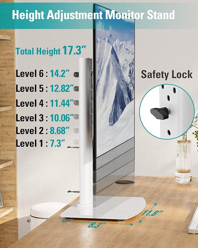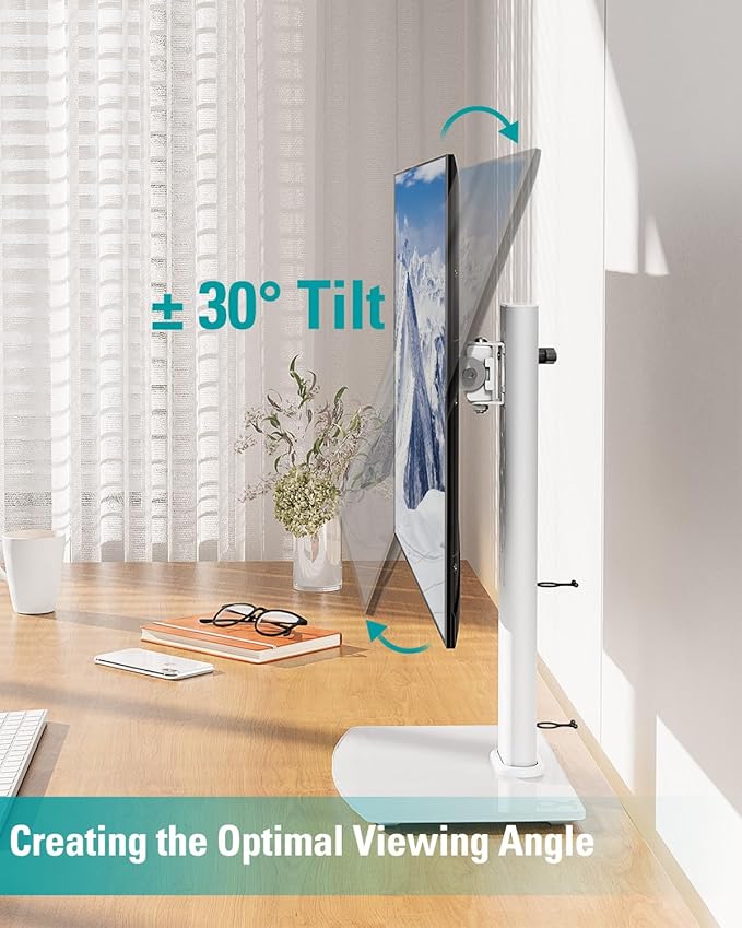 - Comfortable workspace -Say goodbye to messy desktops! This single monitor stand comes with cable management to keep cords clean and organized. It also allows you to move your monitor away from your desktop, freeing up valuable space for other items and making your desk neater and visually more comfortable. And with foot pads to avoid skidding while protecting the desk from scratches.