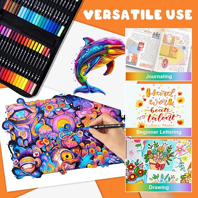 - 【SMOOTH, NONTOXIC INK】Nicecho dual brush marker set come with high-quality water-based ink that flows smoothly. The ink's vibrant colors seamlessly blend, providing beautiful and consistent coloring effects without smudges.